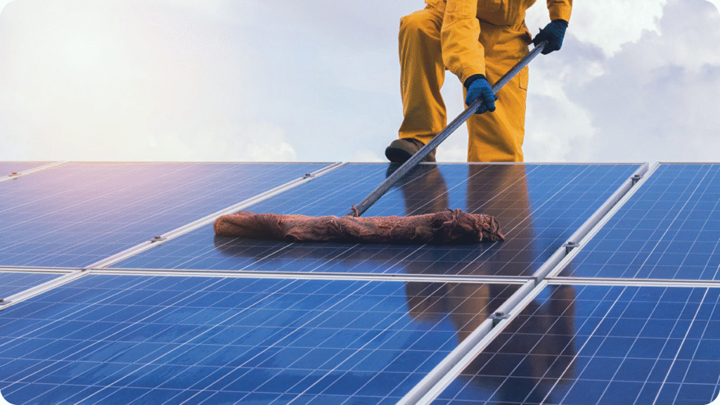 A solar energy system is a long term investment that if properly maintained could offer decades of service and a fantastic return on investment, so we recommend regular or periodic solar panel cleaning service of at least once a year. More often if there have been bushfires in the region.